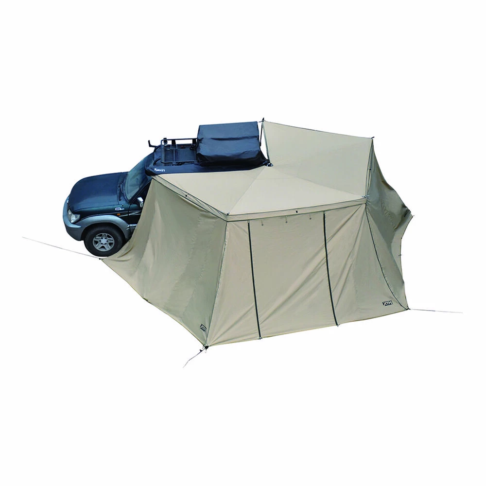 - Attaches to 270ยฐ awning to for extra cover area and privacy